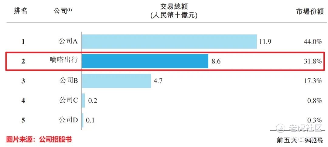 按2023年交易总额计,嘀嗒出行交易额为86亿元,名列国内顺风车市场第二,市场份额为31.8%。