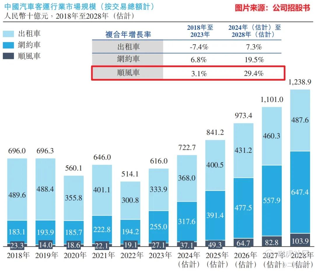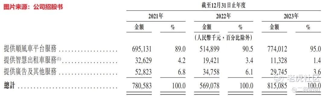根据公司招股书显示,公司在2021年、2022年及2023年,顺风车平台服务产生的收入分别为6.95亿元、5.15亿元及7.74亿元,分别占同年总收入的89.0%、90.5%及95.0%。