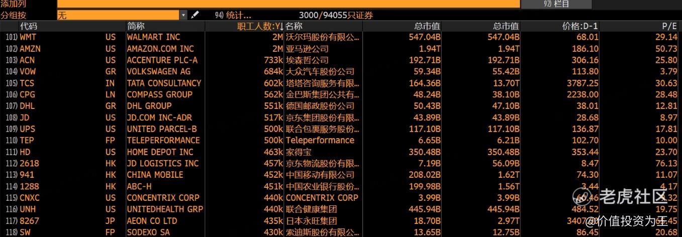 我的个天,全球员工数量最多的公司是沃尔玛,竟然有2百万员工!其次是亚马逊,然后是埃森哲,感觉一家公司的规模都能顶一个国家了!