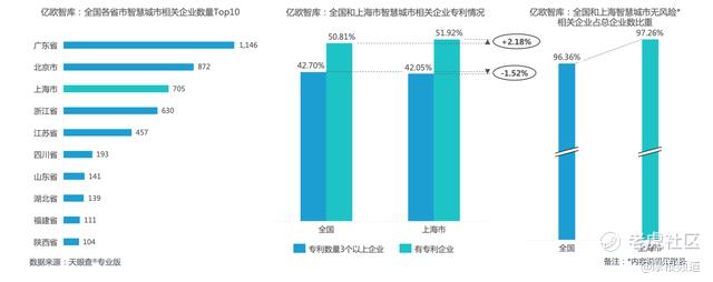 智慧城市是数字化治理的代表行业。报告显示,上海智慧城市相关企业数达700余家,位居全国第三,仅次于广东和北京。上海市经信委《上海市智慧城市发展水平评估报告》中的上海各区域智慧城市发展水平指数评估结果也显示,徐汇、静安、黄浦依次为智慧城市发展水平总指数的前三名,徐汇区在智慧应用指数和发展环境指数中均排名首位。