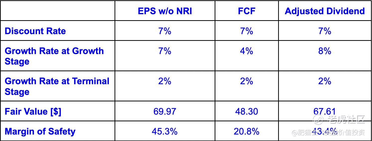 表2. 根据Gurufocus的DCF工具估计CMCSA的内在价值和安全边际