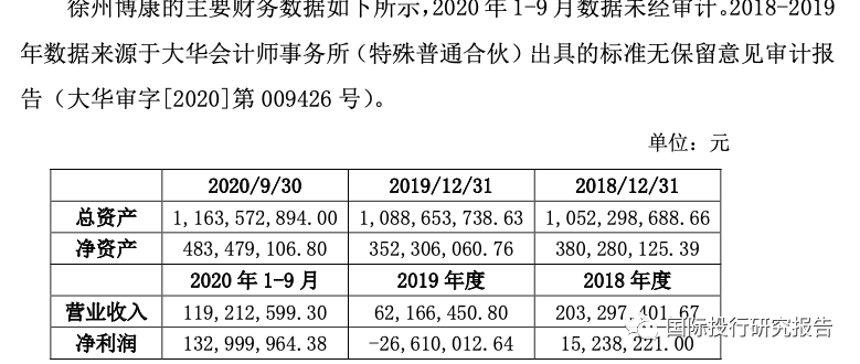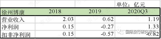 这个表格中2020年前三季度徐州博康净利润为1.33亿,是其他收入,扣非净利润是亏损0.82亿。