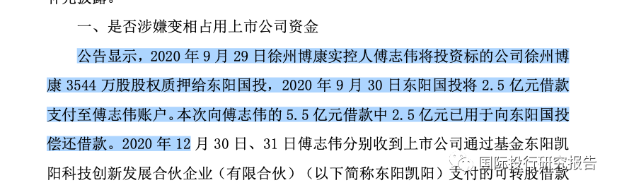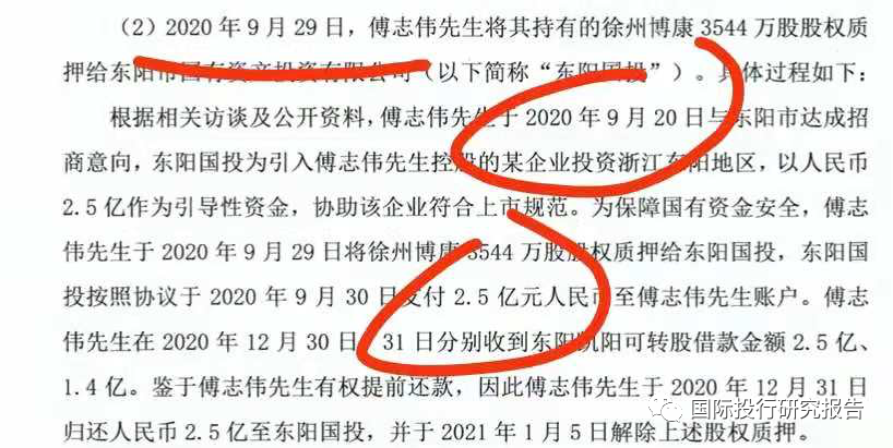 东阳市国有资产投资有限公司(以下简称“东阳国投”)通过 产业基金的形式于2020年9月30日向傅志伟先生提供的借款,系东阳国投为招商引资按照相关合作协议安排提供的借款,合作协议主要内容如下:1、借款金额:2.5亿元。2、借款利息:年化利率8%
