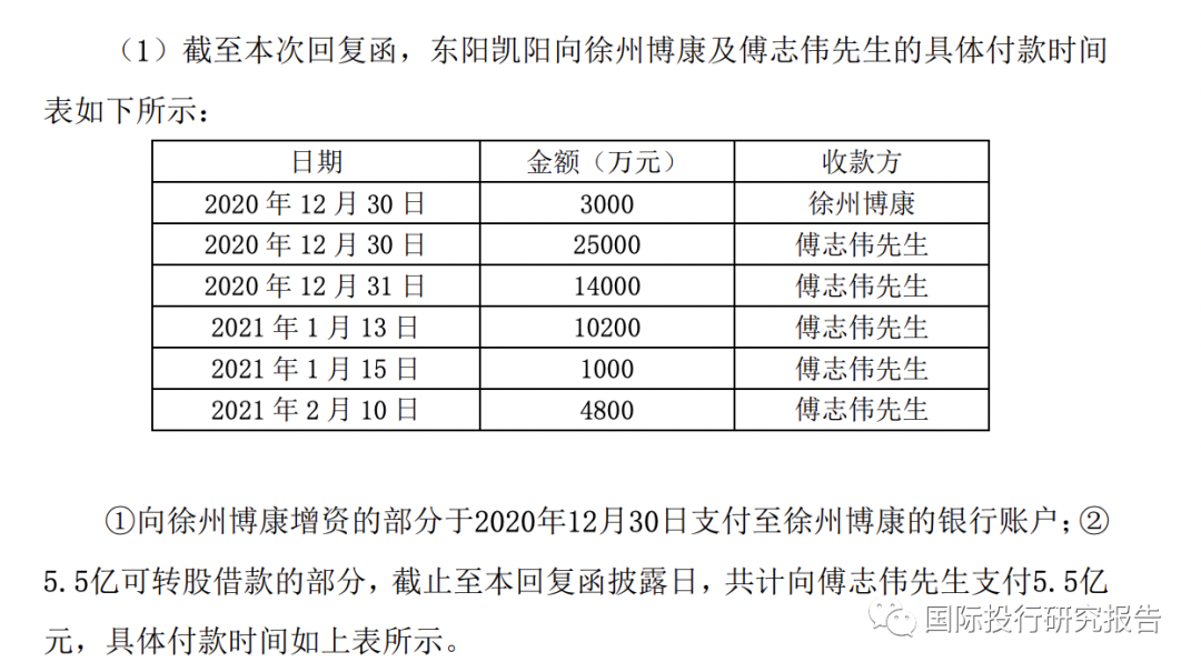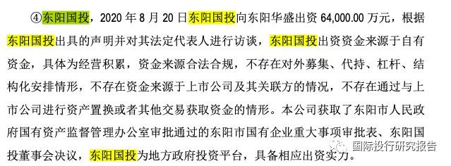 回复函称东阳国投资金来源是经营积累