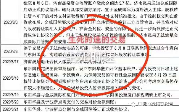 袁晋清自己可能基地天衣无缝,但首先华为让交易所和市场打草惊蛇了,然后可能是当初为了稳住徐州康博或者徐州康博等钱救命,就让东阳国投先借了2.5亿,而这正是此次露出马脚的打败局,你说上市公司整个和徐州康博的合作东阳都不知道?鬼信吗?