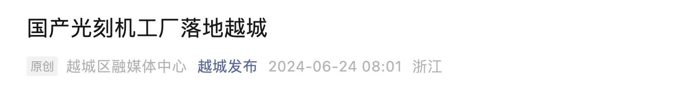 钛媒体App 6月25日消息,浙江省绍兴市越城区融媒体中心官方账号“越城发布”24日公布一篇题为《国产光刻机工厂落户越城》的文章,介绍了总投资约50亿元人民币的上海图双精密装备项目落户绍兴市越城区的消息。