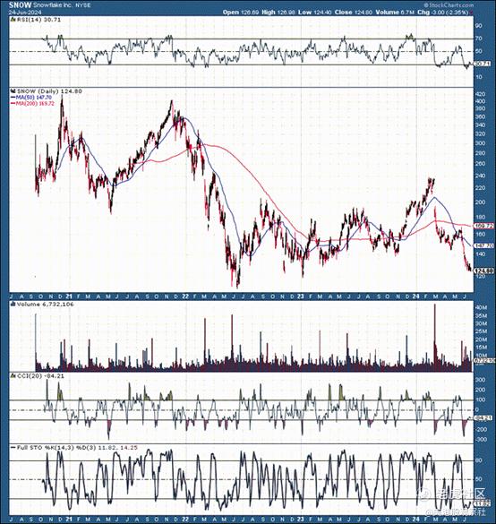 Snowflake从高点滑落,有外国分析师认为,Snowflake在人工智能领域拥有巨大的潜力,或许现在已经到了低点。