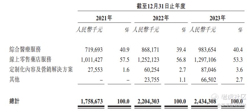 从收入结构上看,综合医疗服务贡献收入占比约40%,线上零售药店服务贡献收入占比在50%以上,而定制化内容及营销解决方案的收入占比逐年提高,2023年增加到了3.6%。