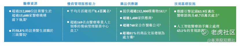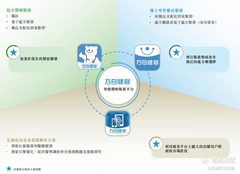 具体来看,方舟云康的综合医疗服务是在公司医院到家(H2H)服务平台进行的覆诊及电子处方服务。而在线零售药店服务,则是直接为客户提供广泛的药品及保健品。公司的综合医疗服务及在线零售药店服务由公司的慢病管理服务中心及稳固的药品供应链提供支援。此外,公司健客平台上庞大的用户群体能够满足医药公司的销售需求,因此,公司也为医药公司提供多种定制化内容及营销解决方案。