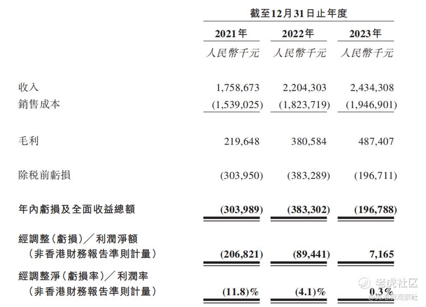 在财务层面,方舟云康表现了稳定的增长和不断改善的盈利能力。2021年到2023年,方舟云康实现收入17.59亿元人民币(下同)、22.04亿元及24.34亿元,年复合增长率为17.7%。随着规模的持续扩大,公司的盈利能力持续改善。同期的毛利率分别为12.5%、17.3%及20.0%,呈现持续提升的趋势,并且实现调整后的净利润分别为-2.07亿元、-0.89亿元及716.5万元,调整后净利润率改善至0.3%。这也标志着公司的经营发展进入正循环阶段,商业模式的可持续性得到验证。