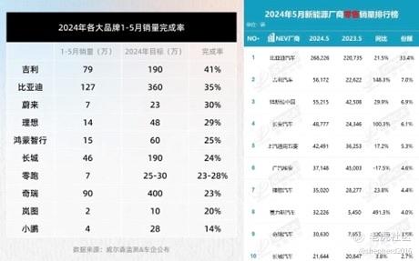 从计划完成度看,吉利1-5月销量目标完成度名列第一,达到41%,是唯一一个超过40%的企业。从销量上看,吉利汽车5月新能源销量56172辆,超过特斯拉。且吉利汽车5月新能源销量同比增长148.3%,增速远远超过比亚迪、特斯拉、长安、理想等车企。