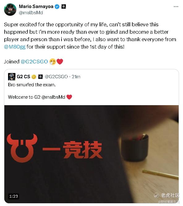 malbsMd随后也在个人社媒上表达了自己加入G2的激动心情。