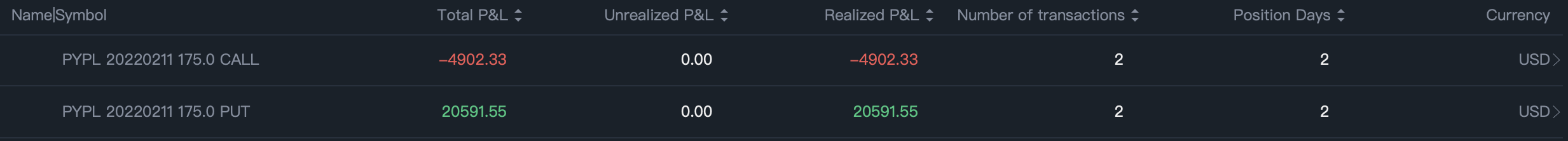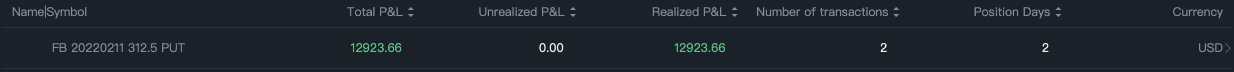 到了2022年第一季度,Netflix的财报率先爆雷,我 的跨式策略取得了不错的收益,而在Meta发财报前,我认为其广告业务增速即将放缓,而其虚 拟现实业务在短时间内将消耗巨大的研发成本且不产生现金流,于是我果断放弃了当时认为 比较稳妥的跨式策略,而直接裸买了价外的看跌期权。Meta出财后大跌26%,使得我的看跌期权翻了7倍多,后来Meta也成为了我做财报交易最常用的标的之一。