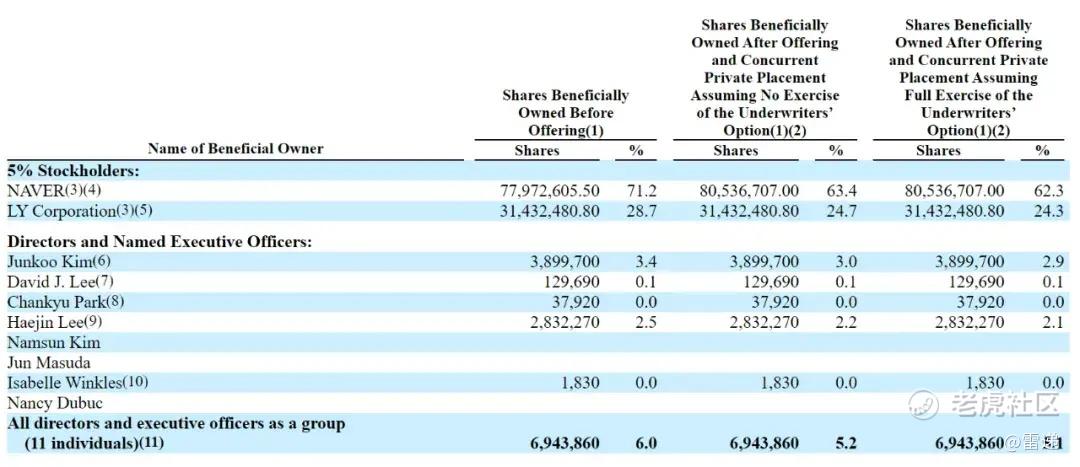 IPO前,NAVER持股71.2%,LY Corporation持股28.7%,Junkoo Kim持股为3.4%,Haejin Lee持股为2.5%。