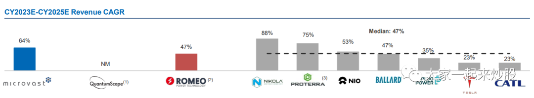 这幅图是收入年复增长率(CAGR)的横向对比。QS是固态电池公司,目前处于研发阶段。理论上到2026年之前都处于纯研发阶段,所有没有收入。