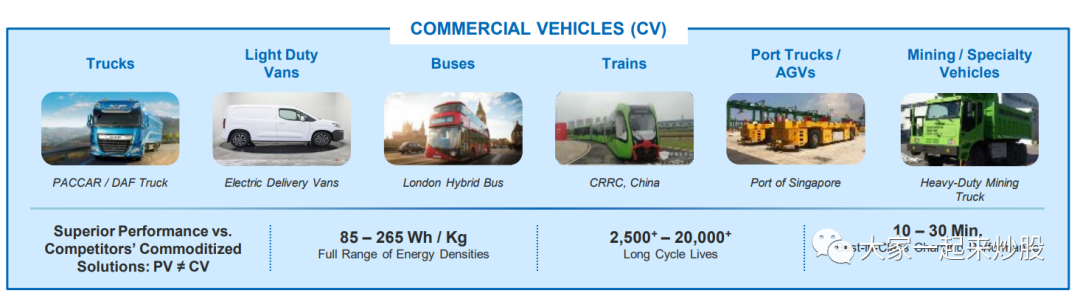 这是一个电池公司。主要目标为:客车,货车,特种车。 跑车,越野车。甚至火车。其电池的主要特点是:充电放电效率超高,能量密度较高,安全,寿命很长。