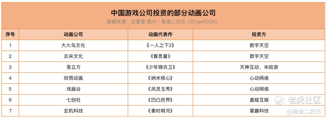 这也促使国内动画公司开始加速组建自家的动画工作室,同时对国内动画制作公司进行投资布局。根据靠谱二次元(ID:kpACGN)的统计,包括米哈游、心动在内的多家游戏公司对国内的动画公司进行了投资。