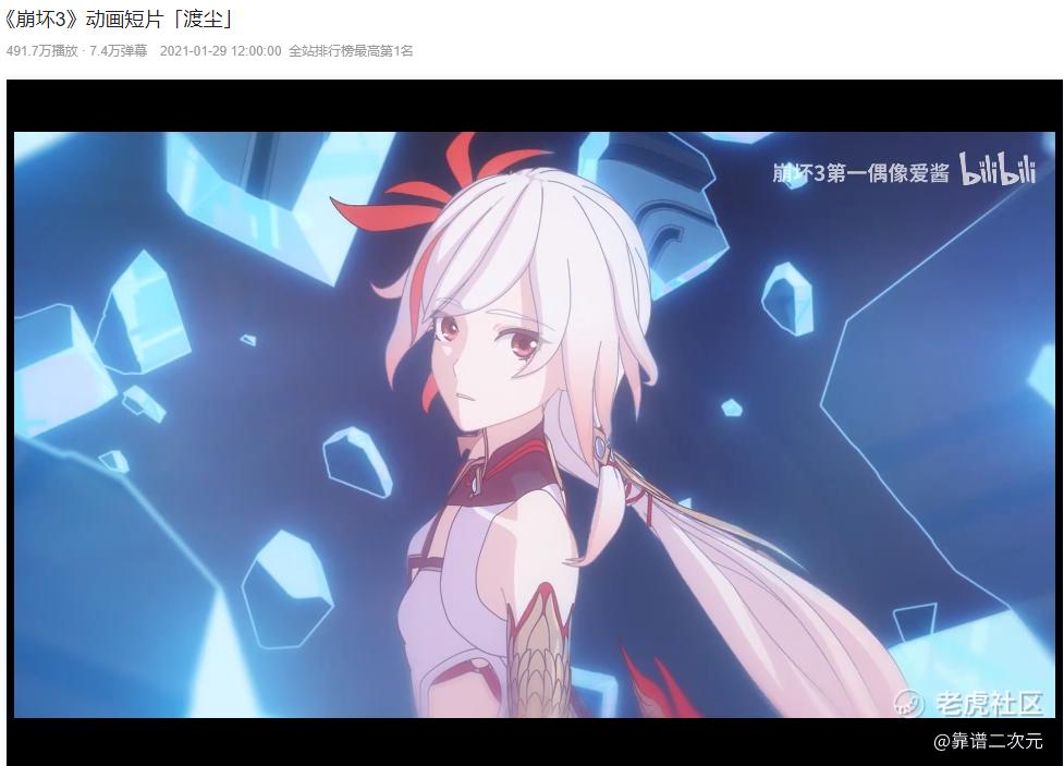 1月29日,米哈游在B站发布了游戏《崩坏3》的新动画短片《渡尘》。这部由米哈游Anime和日本wonderium公司制作的动画,不到12小时成为全站第1。