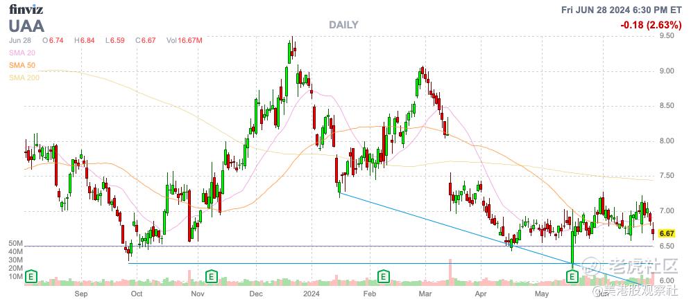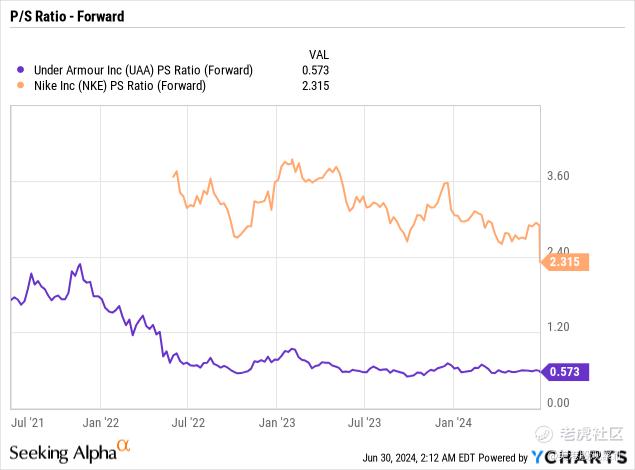 不管怎样,安德玛的股价仍在以不合理的折扣低于耐克。与耐克这个运动鞋巨头相比,安德玛的毛利率更高,销售问题也一样,但要达到同样的预期市盈率,安德玛的股价必须翻四倍。