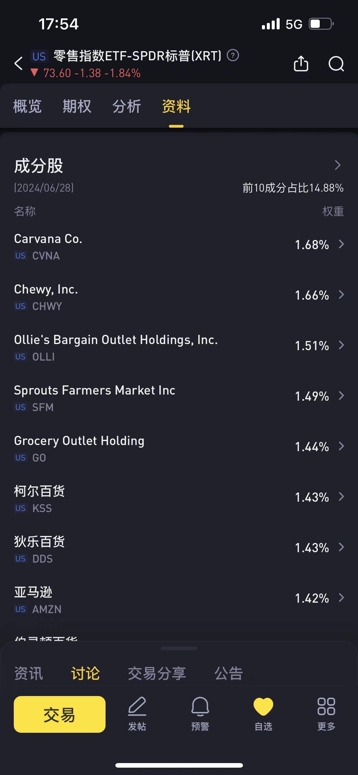 然后我今天想看一眼XRT持仓,发现他们家经理调仓真风骚啊,涨的好的就多买,想知道近期零售股有哪些牛股看持仓排名就行了。