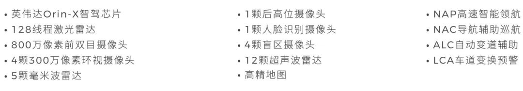 智驾版,增加英伟达Orin-X芯片,激光雷达在内的顶尖智能驾驶硬件以及NAP / NAC高阶智驾功能。十八万价位,即可享受带激光雷达和Orin-X的高阶智驾。