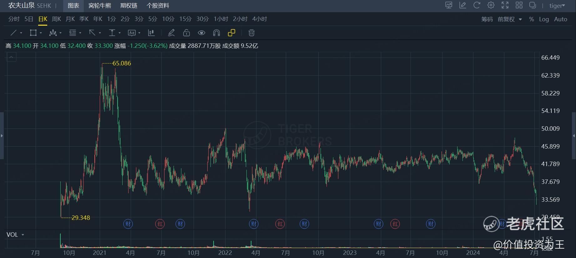 超过的估值和潜在的业绩恶化预期,导致了农夫山泉的股价大跌!
