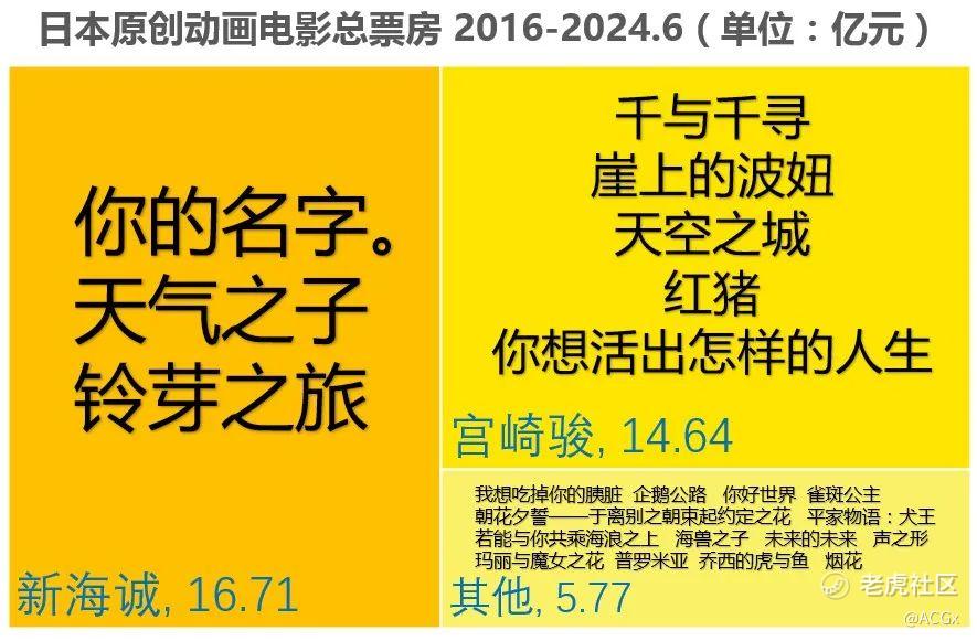 在原创作品里,根据票房表现,又可以划分为宫崎骏、新海诚和其他。
