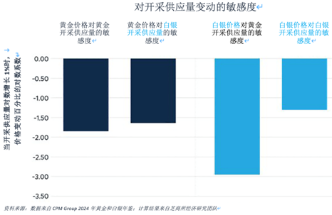 图9:黄金和白银价格对各自开采供应量的变化呈现负相关性。