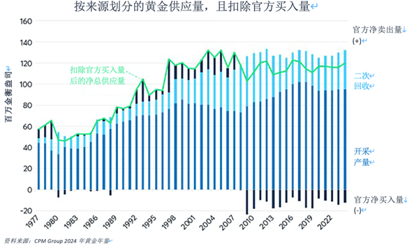 图8:扣除央行买入部分后,黄金供应量自2003年以来一直处于停滞状态
