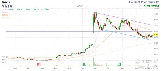 该股市值超过50亿美元,对于大型生物制药公司来说,Viking Therapeutics疗法无疑是一个有吸引力的进入市场的途径。辉瑞、安进和罗氏都通过开发一种减肥药对这个市场表现出了兴趣,考虑到Viking Therapeutics已经取得了前景看好的第二阶段成果,收购Viking Therapeutics可能会让他们轻松进入这个领域。
