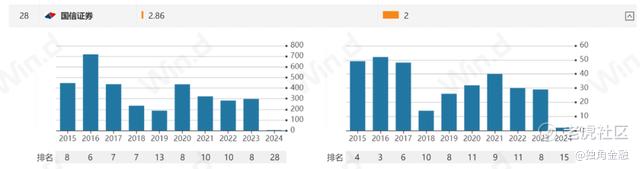 当前以股权承销项目2家、金额2.86亿元,排名第28位的国信证券,当年可是一度获得“保荐王”的称号。