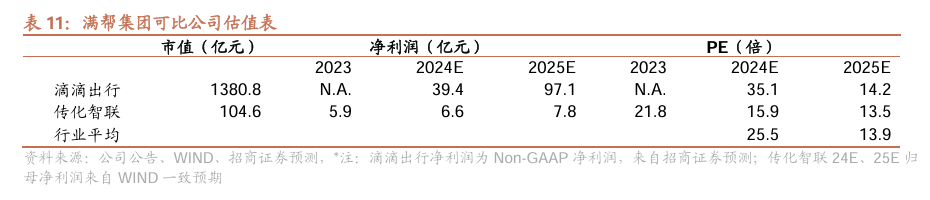 投资建议。公司为跨城数字货运平台龙头,市占高壁垒强,货主及单量持续高增长,经纪+会员+抽佣+增值服务协同加速变现,预计公司24E/25E/26E Non-GAAP净利分别为**亿,给予公司24年Non-GAAP净利**倍PE,对应目标价约**美元/DR,首次覆盖给予“**”评级。