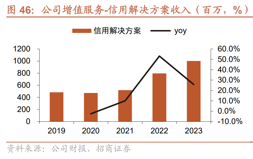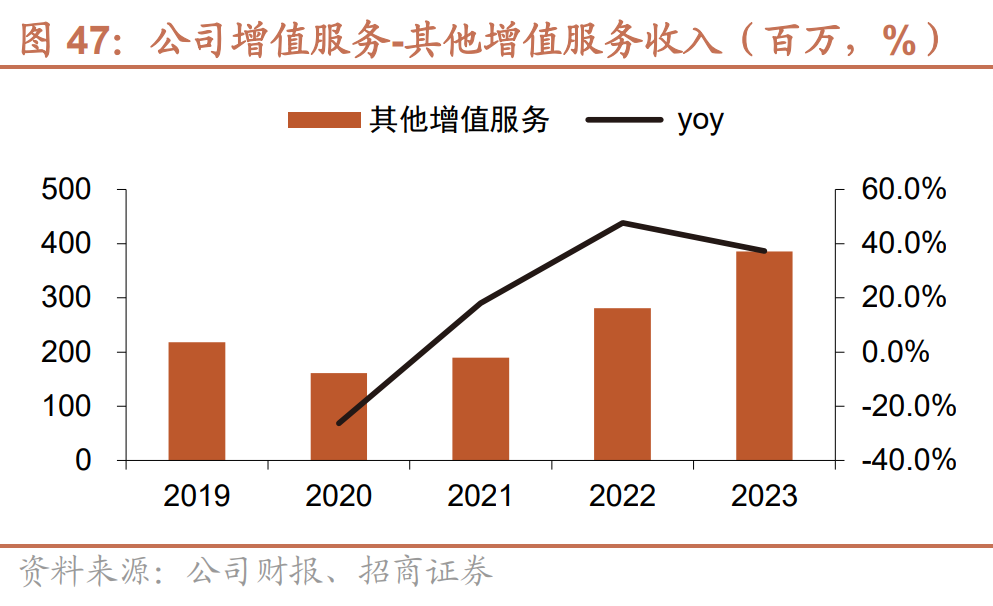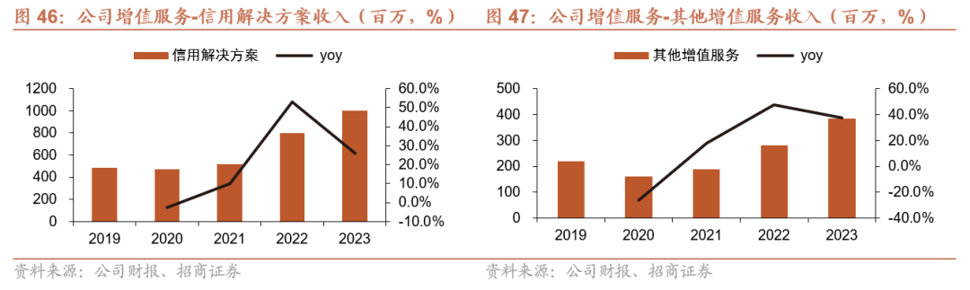 公司增值服务主要由信用解决方案及其他增值服务构成,2023全年规模达到13.9亿。增值服务主要分为信贷业务和其他业务两类,其中信贷业务指平台通过自有资金为货主及司机提供小额现金贷款的服务,时间周期通常以周或月为单位;其他增值服务则包括保险、加油卡、高速公路卡、维修等。当前公司增值服务以信用解决方案为主,占增值服务收入比重达72.2%;公司增值服务收入持续增长,2023年收入达到13.9亿/+28.8%。
