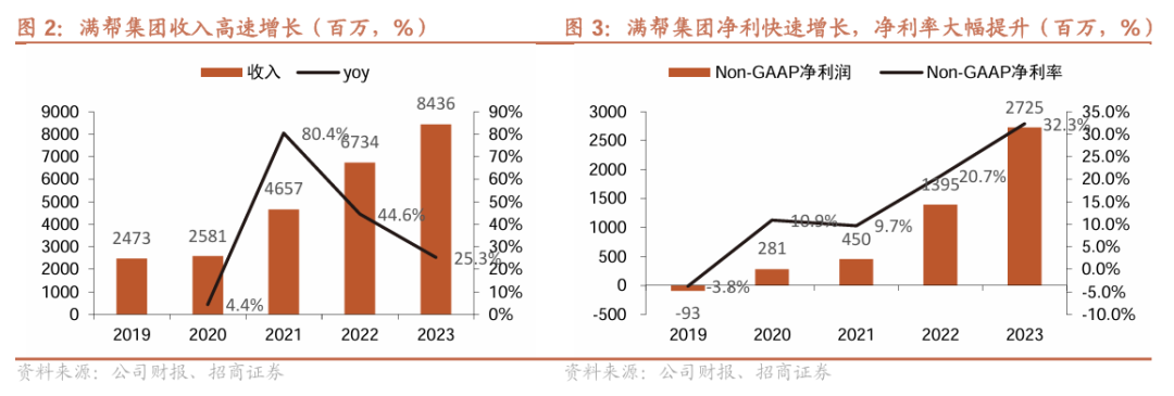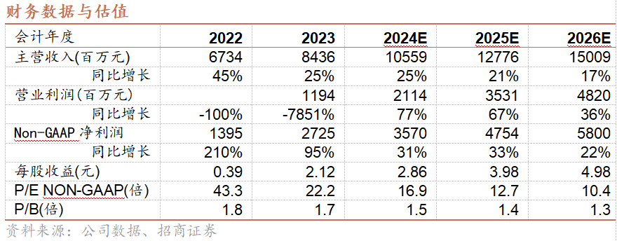 公司收入快速增长,净利率大幅提升。2023年,公司在营业收入高速增长的同时,Non-GAAP净利润实现大幅提升;2023年公司收入达到84.4亿/+25.3%;Non-GAAP净利润达到27.3亿/+95.3%,对应Non-GAAP净利率为32.3%。随着公司变现率的持续提升及经营杠杆的持续释放,公司Non-GAAP净利率从2021年前10%左右的水平提升至30%+,盈利能力持续明显增长。