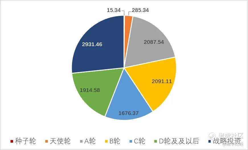 图:中国人工智能行业股权投资事件在不同轮次的金额(单位:亿元)