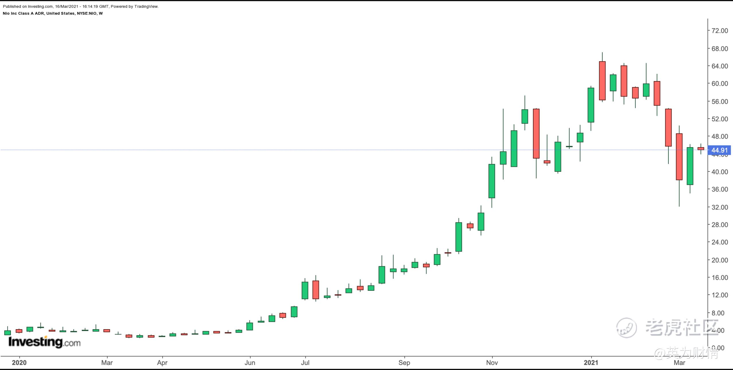 巨大的投资者买兴推动电动汽车和其他新能源类股从2020年3月的低点反弹,乘此东风,2021年1月11日,该股的股价一度创下了66.99美元的历史高位。然而,从那以后,市场开始出现获利回吐,3月5日,该股跌破了32美元,今年迄今为止,它已经累计下跌了8%。而值得注意的是,过去一周,投资者似乎又回来了,在几天内,就把蔚来汽车的股价推高到了45美元的水平。
