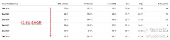 首先,假设META的经营性现金流(OCF)将以10.4%的复合年增长率增长,这与之前讨论的共识估计一致。