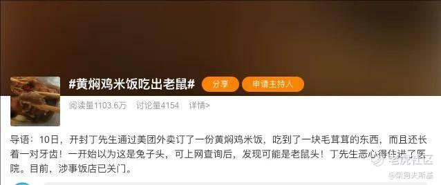 据这位网友表示,自己在美团点了一份黄焖鸡米饭,吃到了一块毛茸茸的东西,而且还长着一堆牙齿,一开始以为是兔子头,可上网查询对比发现,竟然是老鼠头。