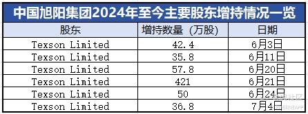 就在旭阳集团开足马力回购股份的同时,公司的重要股东们也正以坚定态度密集增持公司股份。据统计,今年来旭阳集团控股股东Texson Limited(由杨雪岗先生全资拥有)共增持了643.8万股。