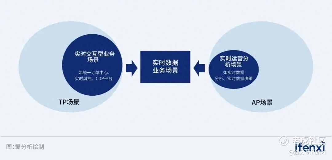 按照消费端的数据处理模式,实时数据业务场景包含TP场景下的实时交互型业务场景和AP场景下的实时运营分析场景。