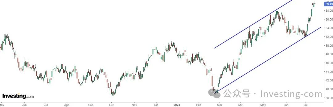 5月9日,Wheaton Precious Metals (NYSE:WPM)股价为$54.82,当时我认为该股有潜力达到59.10美元,而目前股价已升至60.03美元。