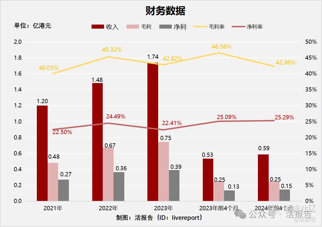 毛利分别约为人民币0.48亿元、0.67亿元、0.75亿元、0.25亿元及0.25亿元,年复合增长率为24.53%;