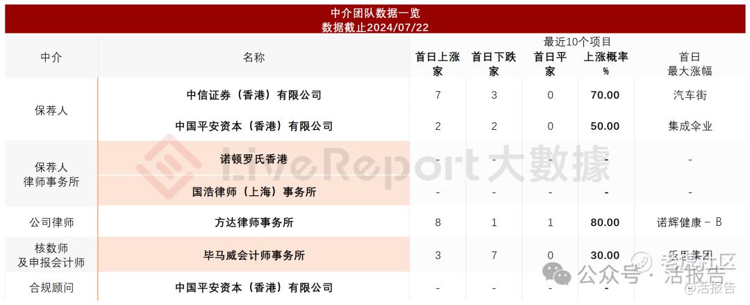 据LiveReport大数据统计,中信保荐的首日破发率为25%;平安资本保荐的首日破发率为50%。