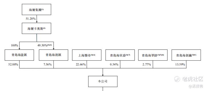 控股股东海尔集团通过青海海盈汇、青岛海创汇持股60.44%;上海曌奇持股22.66%;青岛海创赢持股13.59%;青岛海众捷持股2.77%;青岛海欣盛持股0.54%(其中上海曌奇、青岛海欣盛、青岛海众捷的普通合伙人均为鹿遥先生全资持有的青岛嗨创)。