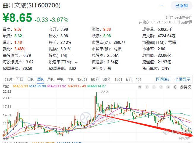 作为曾经A股市场中的“妖股”,曲江文旅在2023年初因“盛唐密盒”的爆火曾在8个交易日中收获5个涨停,一时风光无限,也曾被诸多机构看好,但业绩爆雷还是让其股价一落千丈。