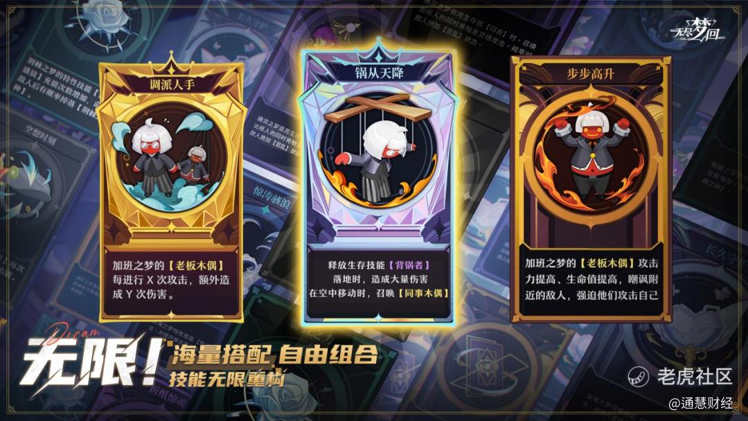 除了空灵奇幻的梦境,作为动作肉鸽爽游,《无尽梦回》还拥有四十余名梦灵和上千种技能拆分玩法,玩家可以自由进行搭配,形成成千上万种不同的技能组合,每种组合都能带来意想不到的惊喜效果。在游戏中,玩家还可以将喜爱的梦灵自由搭配成三人小队,与他们并肩作战,在随机生成的梦境地图中进行冒险。