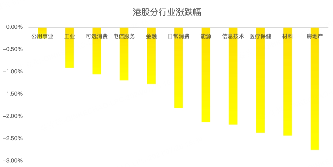 板块上看,本周悉数下跌,仅公用事业跌幅较小,房地产、医疗保健、消费板块表现不佳: