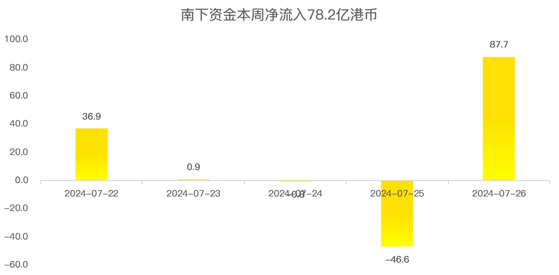 从南下资金来看,本周净流入78.2亿港币,但主要是周五大幅流入,前四天净流出9.5亿,或预示着部分机构获利了结: