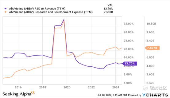 另一个看涨的迹象是,艾伯维在免疫学、肿瘤学、神经科学和美学等所有业务领域都实现了收入增长。这一点至关重要,因为所有领域的增长极有可能意味着该公司的业务组合强劲而富有弹性。此外,跨越各种业务线实现增长的能力表明,公司能够在各个领域推出引人注目的产品。也就是说,该公司在将可观的研发预算转化为财务成功方面相当高效。