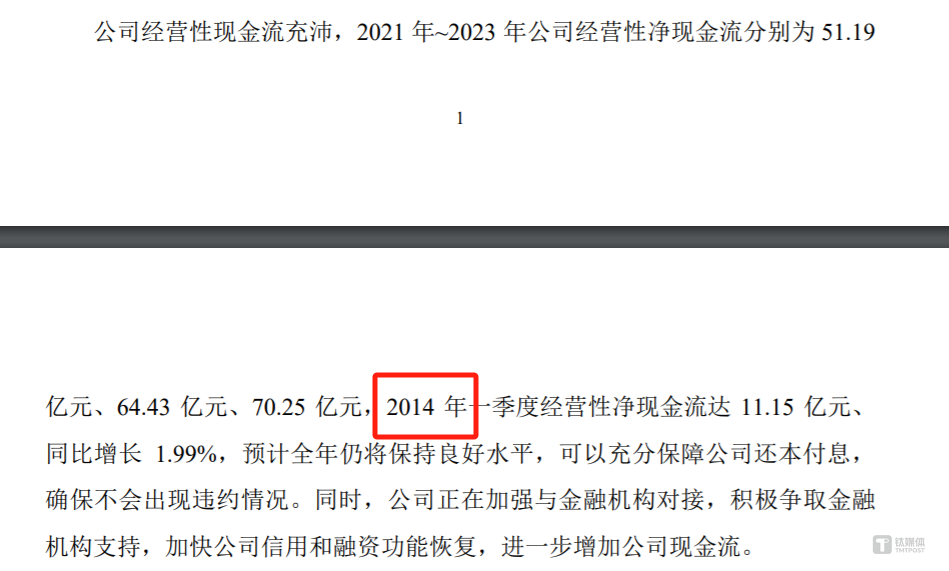 有意思的是,不知是否受到一天之内紧急发布多个公告的影响,在告全体股东信中还出现表述错误,将本为2024年一季度经营性净现金流,写成2014年。